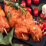 Tender chicken pieces, perfectly seasoned for kebabs. Ideal for grilling, baking, or pan-searing to create a delicious meal.